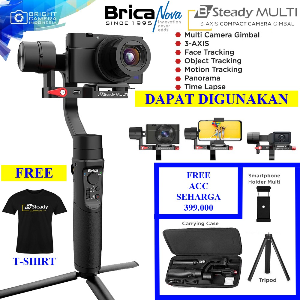 Jual Brica B-steady Pro 3 Axis Gimbal Smartphone Action Cam - Black - Free Kaos Exclusive Terbaru Online Di Blibli Penjual Terpercaya gratis Ongkir jaminan 14 Hari Pengembalian. Beli Gimbal Stabilizer Action Cam Online berkualitas dengan harga murah terbaru 2021 di Tokopedia.