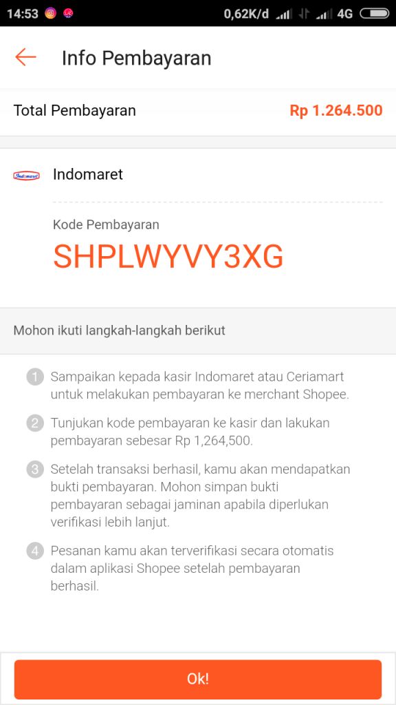 Tambahkan produk yang ingin kamu beli ke keranjang belanja lalu checkout. Pembayaran menggunakan Indomaret akan dikenakan biaya penanganan sebesar Rp2500 untuk pemeliharaan sistem dan peningkatan layanan dalam bertransaksi melalui Shopee. Tentu ada berbagai alasan mulai dari sulit mencarinya di sekitar lokasi tinggal dan jikapun ada harganya yang kelewat mahal.