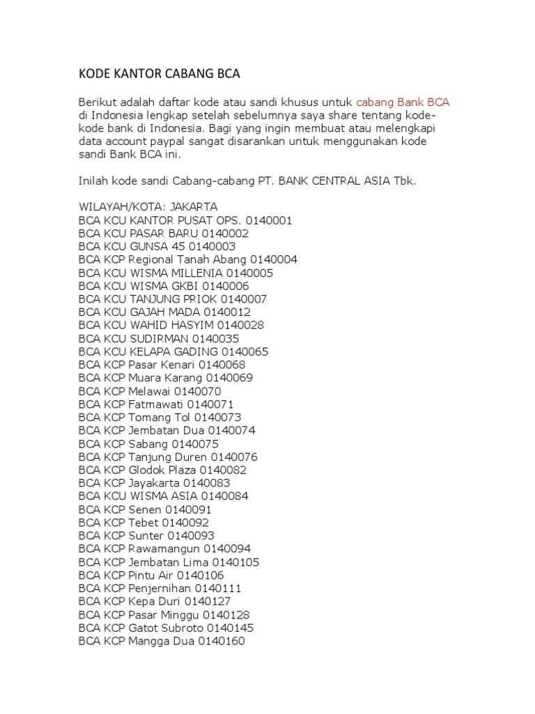 26 Daftar Kode Cabang Bank Bca 0998 Info Dana Tunai