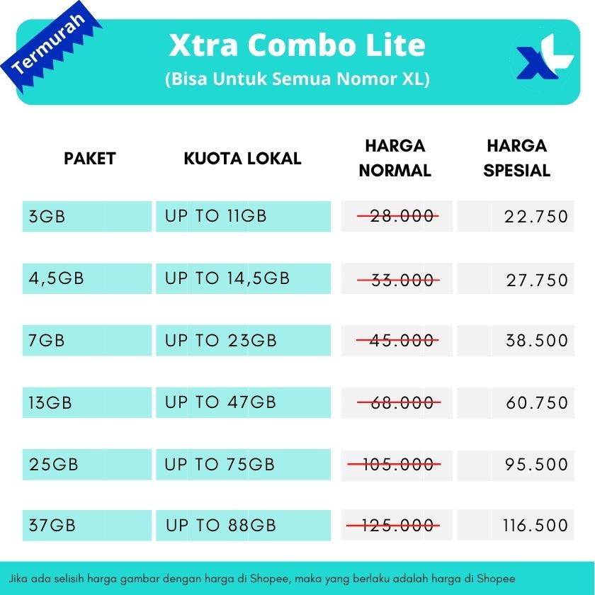 Kuota Xl Xtra Combo Lite Xl Unlimited Turbo Xl Unlimited Youtube Paket Internet Xl Murah Shopee Indonesia